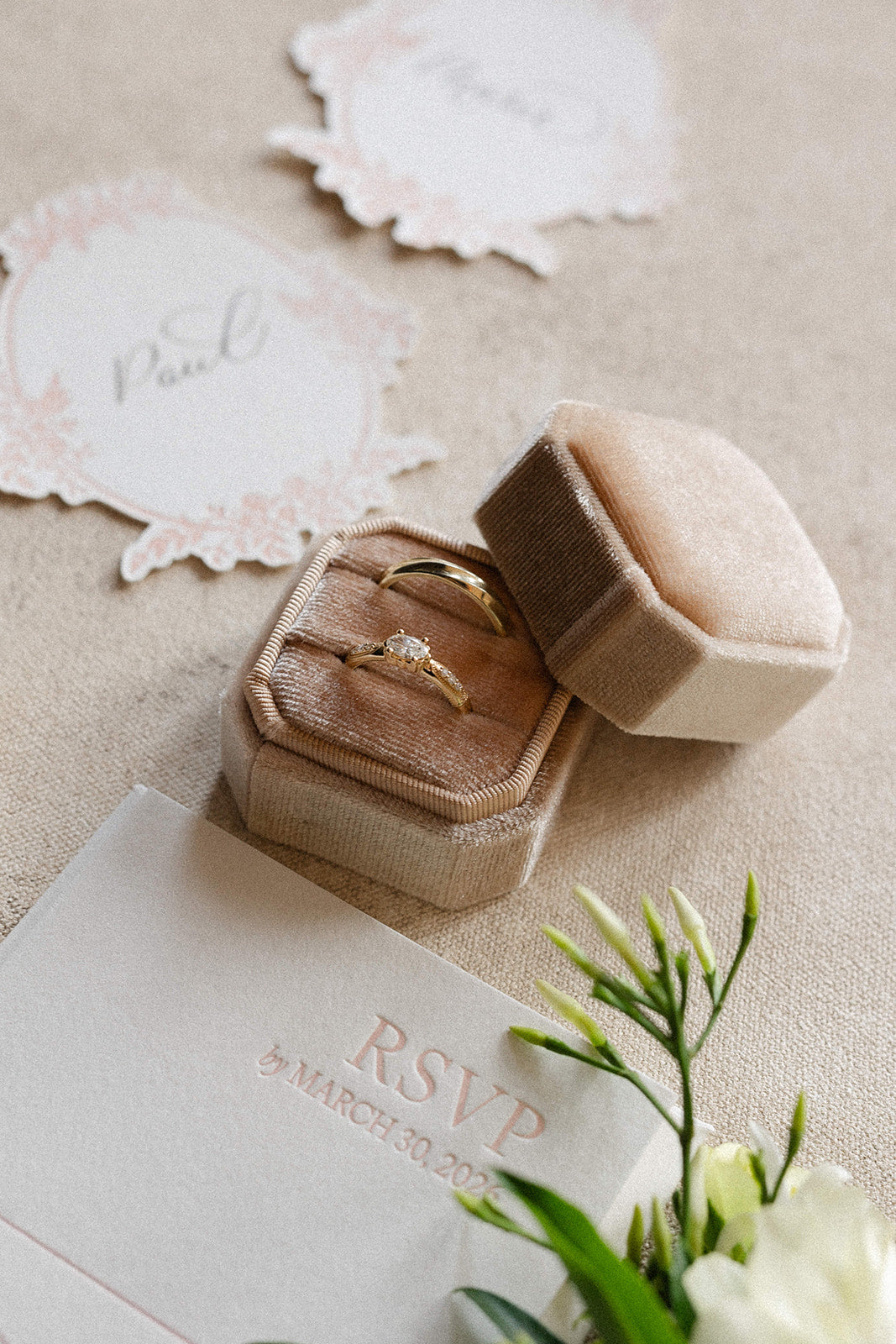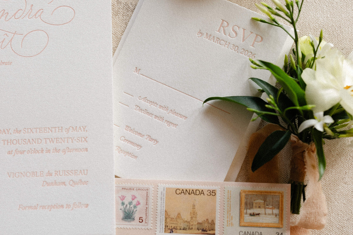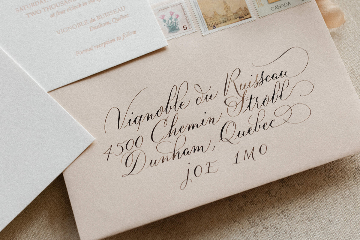 Invitations de mariage avec impression letterpress sur papier de coton et calligraphie moderne.